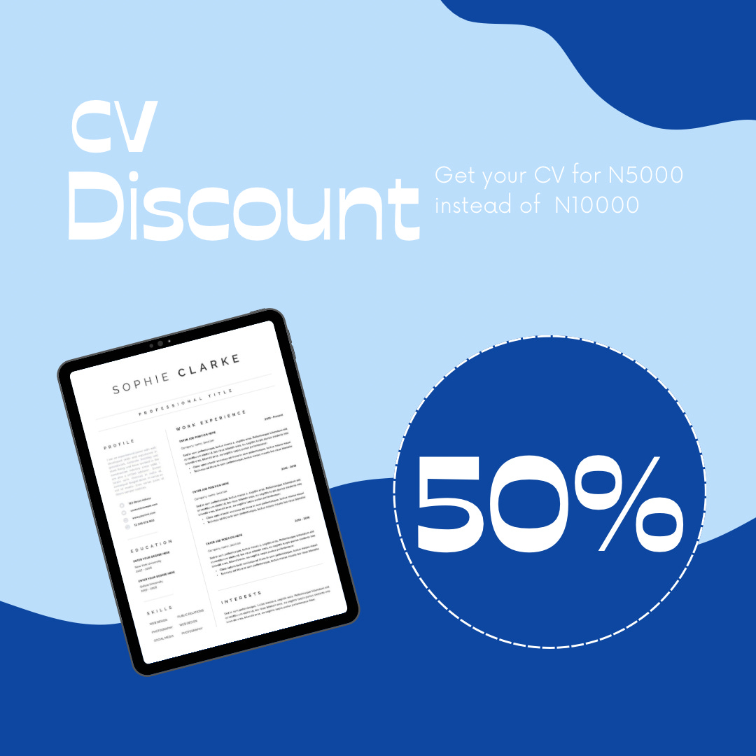 ā Lastly, Set up your portfolio and CV. A good portfolio and CV will bring you 10x closer to your dream job. Speaking of CVs, do you know that we are currently running a discount on CVs all through August? Yes, we are!Ā